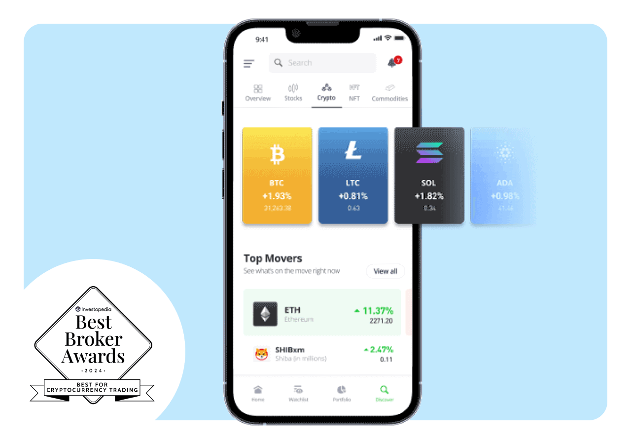Eliminate the need for multiple platforms. You can build your ultimate crypto portfolio, then diversify with multiple assets and ready-made Smart Portfolios. Crypto in your eToro portfolio can accrue generous crypto staking rewards*, or be seamlessly transferred to the eToro Money crypto wallet at any time.